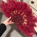 Add a luxurious and personalized touch to your special occasions with this elegant feather fan! Featuring soft burgundy feathers, intricate beadwork, and a custom name in gold lettering, it’s the perfect accessory for weddings, henna nights, and other celebrations.